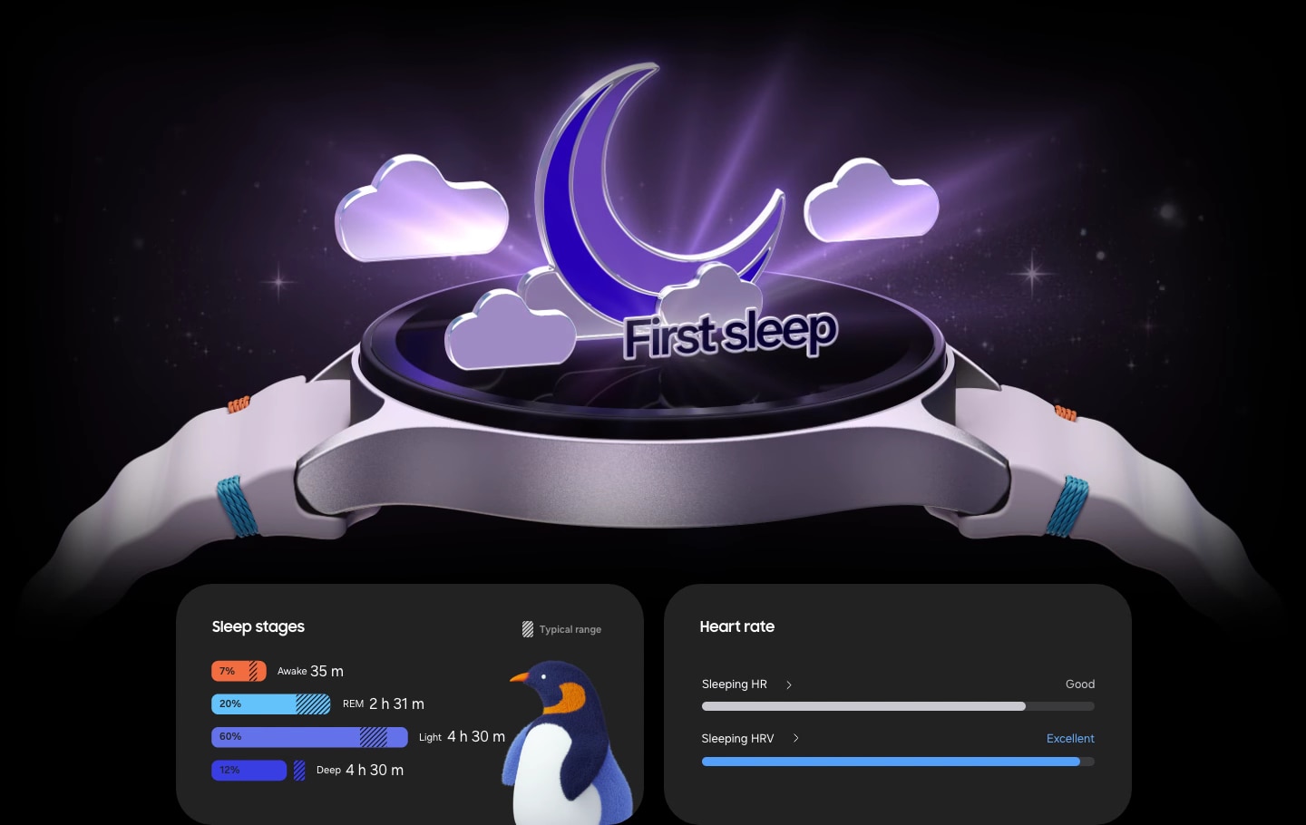 Egy pihentető éjszaka az alváskövetéssel kezdődik. A napi alvási pontszámtól kezdődően, az alvás közbeni pulzusszámon át - a személyre szabott alvástréningig bezáróan pontosan megértheted alvási szokásaidat és tippeket kaphatsz az alvás minőségének javítása érdekében.
