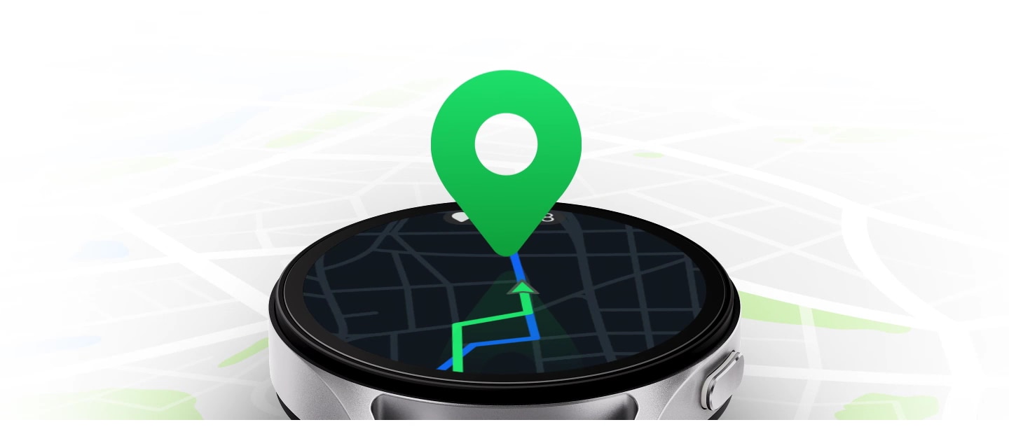 Könnyedén megtalálhatod az utadat a Galaxy Watchon megtalálható eddigi legpontosabb GPS-ünkkel. A kétfrekvenciás GPS két műholdjelsávot (L1+L5) használ, így még útvesztőnek tűnő várostömbökön keresztül is pontos és következetes nyomkövetést biztosít.